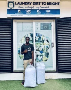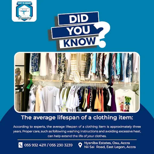 Dirt to Bright Cleaners is a laundry and cleaning service in Accra, Ghana, serving areas including East Legon, Osu, and Dansoman, offering residential/corporate laundry, sneaker cleaning, carpet/sofa cleaning, and fumigation, known for pick-up/delivery and specialized garment care.