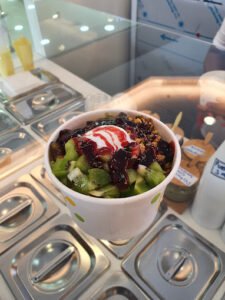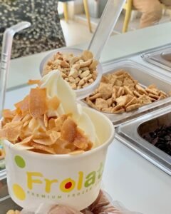 Frolato is a vibrant frozen yogurt shop that will satisfy all your cravings for a cool and creamy treat. Step inside this trendy spot and you’ll be greeted by a cheerful atmosphere and a delightful aroma of freshly made frozen yogurt. Frolato serves Frozen Yoghurt, Smoothies, raw fruit and vegetable juice. Consider for snack, lunch or breakfast Located at the Marina Mall, Airport City, Accra.